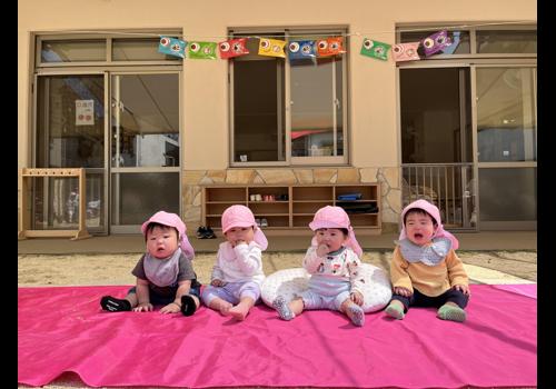 かわいい小さいこいのぼりの前でハイチーズ!!