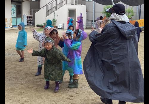 雨の日にレインコート、長靴を履いて『雨の日さんぽ』♪
