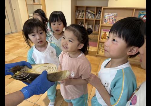 今月はたけのこ。触ったり、においを確かめたり知識を深めます✨