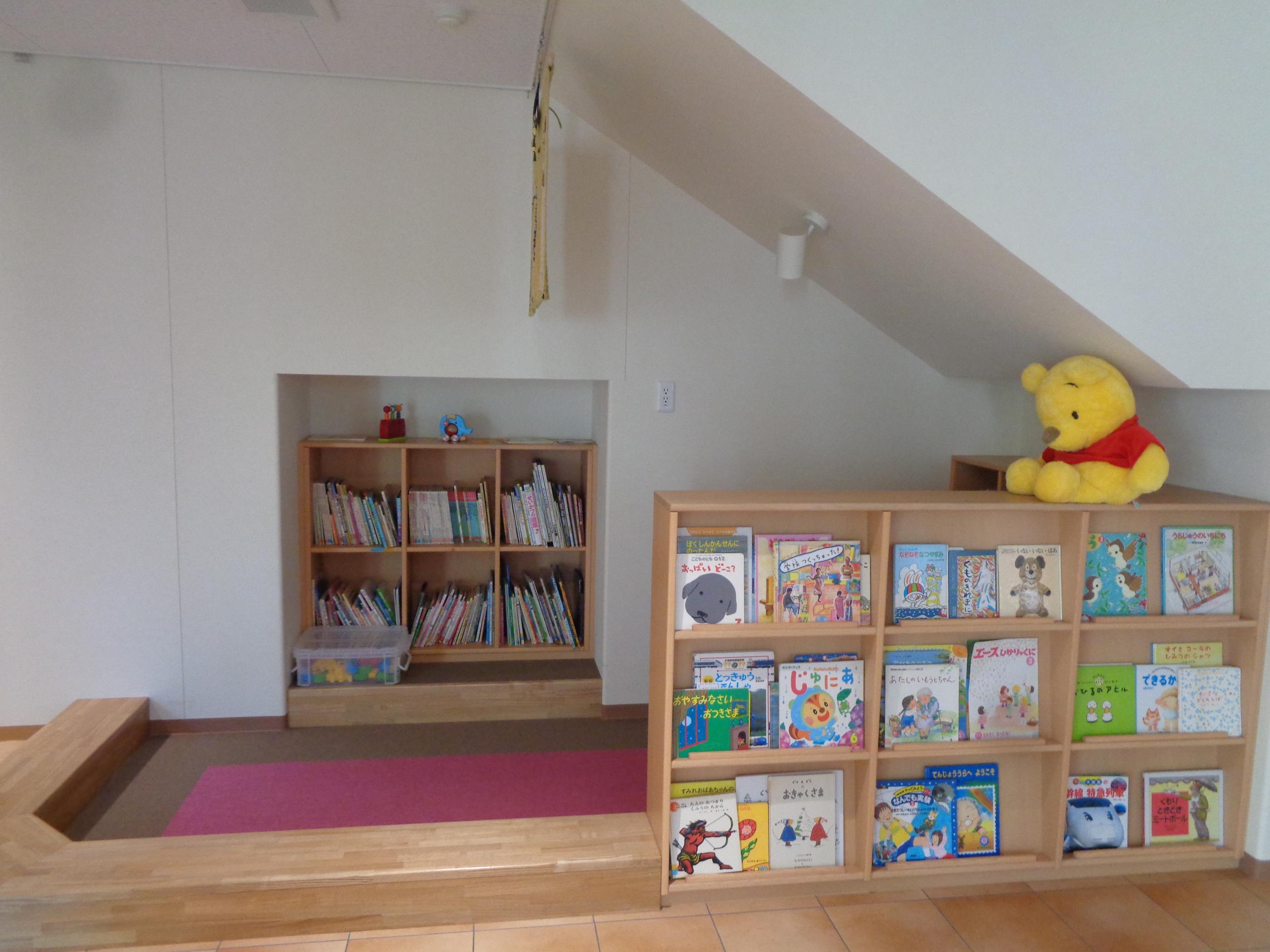 ![]() ![]() このコーナーで自分の好きな絵本を選んでゆったりと過ごすことが出来ます。  | |